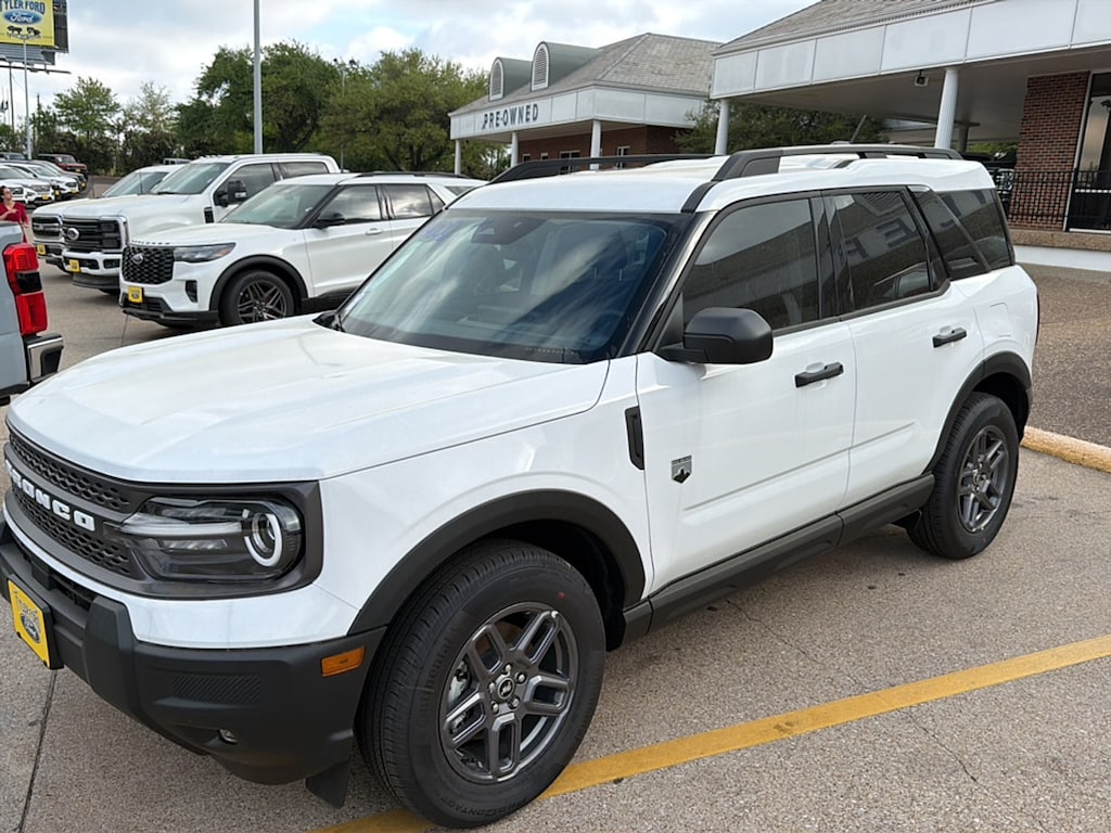 With So Many Happy Drivers in the Greater Lindale, Brownsboro, Bullard and Whitehouse TX Areas, It's Easy to See Why Tyler Ford is Your Trusted Source for Ford Vehicles Introducing the 2025 Ford Bronco Sport Big Bend 4x4, a robust and versatile SUV that combines rugged performance with modern comfort. Dressed in a striking Oxford White exterior, this Bronco Sport stands out with its unmistakable design that exudes confidence both on and off the road. Powered by a dynamic 1.5-liter Dragon engine, this vehicle delivers impressive efficiency and responsive acceleration, making it perfect for daily commutes and adventurous weekend getaways alike. The advanced 4x4 capability ensures you can tackle any terrain with ease, providing peace of mind whether you're navigating city streets or exploring the great outdoors. Step inside to experience a thoughtfully designed interior that prioritizes space and functionality. With comfortable seating and modern technology at your fingertips, every journey becomes an enjoyable experience. The Big Bend trim level offers convenient features and stylish accents, making it an excellent choice for those seeking a blend of ruggedness and refinement. Don't miss the opportunity to own this exceptional 2025 Ford Bronco Sport Big Bend 4x4, where adventure awaits at every turn. Visit us today for a test drive and feel the thrill firsthand! Interested in utilizing one of our areas of expertise? Come visit us at 2626 S. Southwest Loop 323 Tyler, Texas for all your automotive needs and an experience that's satisfying, worry-free, and at your convenience.