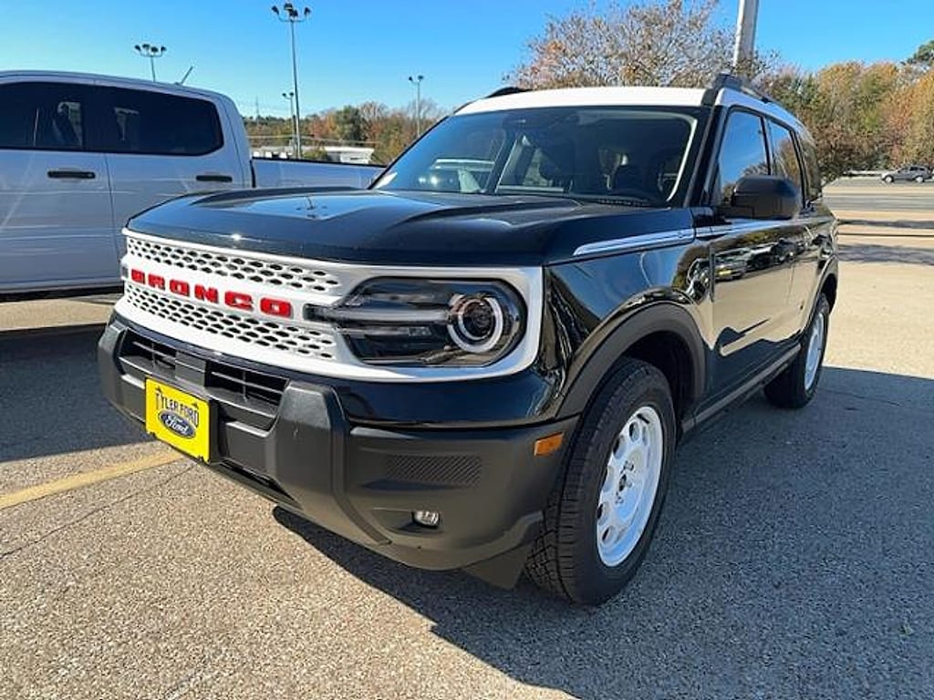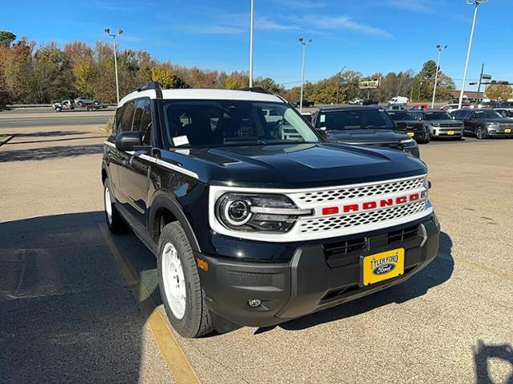 With So Many Happy Drivers in the Greater Lindale, Brownsboro, Bullard and Whitehouse TX Areas, It's Easy to See Why Tyler Ford is Your Trusted Source for Ford Vehicles Introducing the 2025 Ford Bronco Sport Heritage 4x4, where rugged capability meets timeless design. Dressed in a striking Shadow Black exterior, this SUV effortlessly combines classic style with modern performance. Powered by a spirited 1.5-liter Dragon engine, the Bronco Sport provides an exhilarating driving experience, whether navigating city streets or tackling off-road trails. This versatile 4x4 is engineered for adventure, offering exceptional traction and control to conquer various terrains. Its robust build and advanced features ensure you can take on any journey with confidence. Inside, the Bronco Sport combines spaciousness and comfort, making it the perfect choice for both daily commutes and weekend getaways. Equipped with the latest technology and safety features, this model prioritizes your peace of mind while enhancing your driving experience. Don't miss your chance to own this blend of heritage and innovation. The 2025 Ford Bronco Sport Heritage 4x4 is ready to take you on your next adventure. Experience the freedom of the road-explore new horizons in style with the Bronco Sport today! Interested in utilizing one of our areas of expertise? Come visit us at 2626 S. Southwest Loop 323 Tyler, Texas for all your automotive needs and an experience that's satisfying, worry-free, and at your convenience.