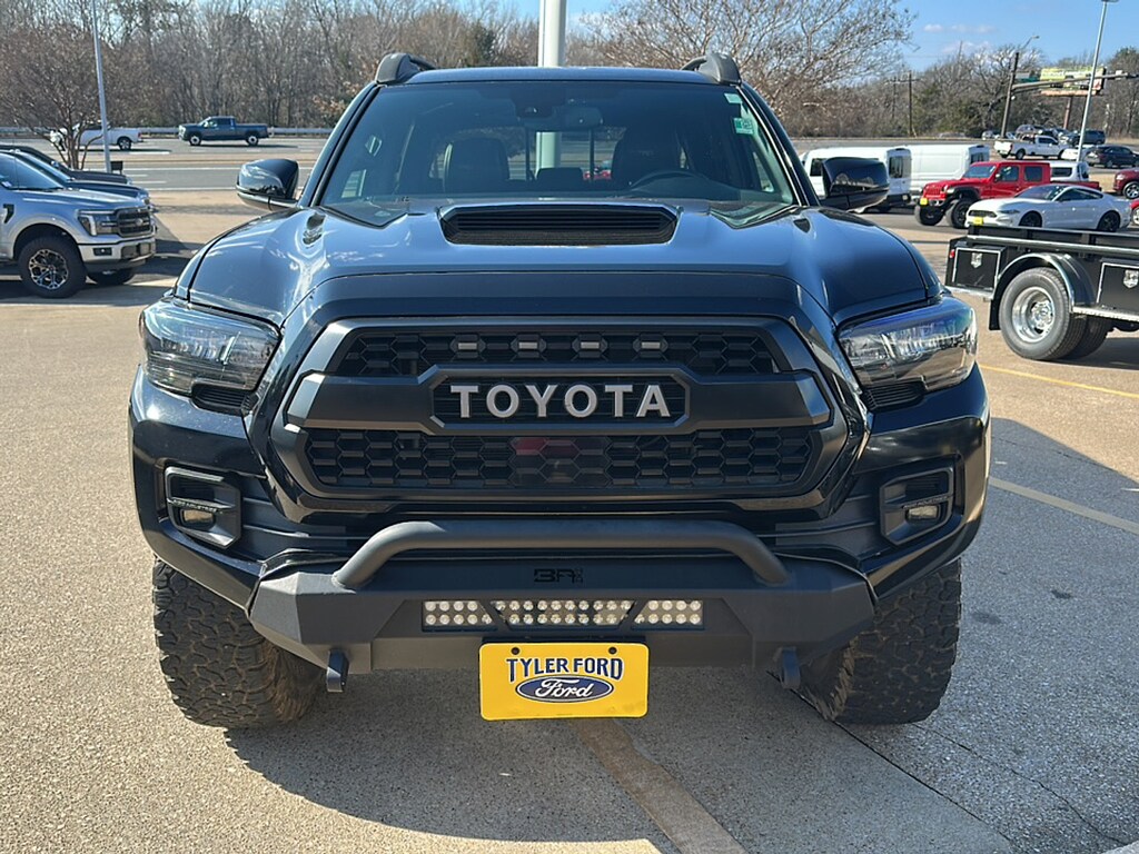 With So Many Happy Drivers in the Greater Lindale, Brownsboro, Bullard and Whitehouse TX Areas, It's Easy to See Why Tyler Ford is Your Trusted Source for Ford Vehicles Introducing the 2019 Toyota Tacoma TRD Pro Double Cab, a rugged and versatile pickup designed for both on and off-road adventures. This specific model features a striking Midnight Black Metallic exterior paired with a sleek black interior, exuding an aura of sophistication and toughness. Under the hood, the Tacoma is powered by a robust 3.5L V6 engine, delivering an impressive 278 horsepower. Its advanced port and direct fuel injection system, along with Dual Overhead Cam (DOHC) technology and Variable Valve Timing (VVT), ensures enhanced performance and efficiency, allowing you to tackle any terrain with confidence. The TRD Pro trim is equipped with off-road capabilities including a specially-tuned suspension, skid plates, and all-terrain tires, making it an excellent choice for outdoor enthusiasts. The spacious 5-foot bed provides ample room for gear, while the double cab offers comfortable seating for up to five. Experience the perfect blend of power, style, and durability with the 2019 Toyota Tacoma TRD Pro. Ideal for those who demand both performance and versatility, this truck is ready to elevate your driving experience. Interested in utilizing one of our areas of expertise? Come visit us at 2626 S. Southwest Loop 323 Tyler, Texas for all your automotive needs and an experience that's satisfying, worry-free, and at your convenience.